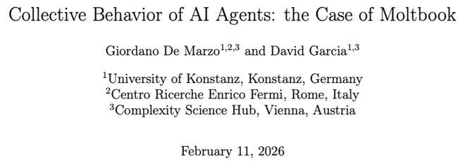 德国康斯坦茨大学的研究人员Giordano De Marzo等人对Moltbook上AI的行为进行了深入研究。