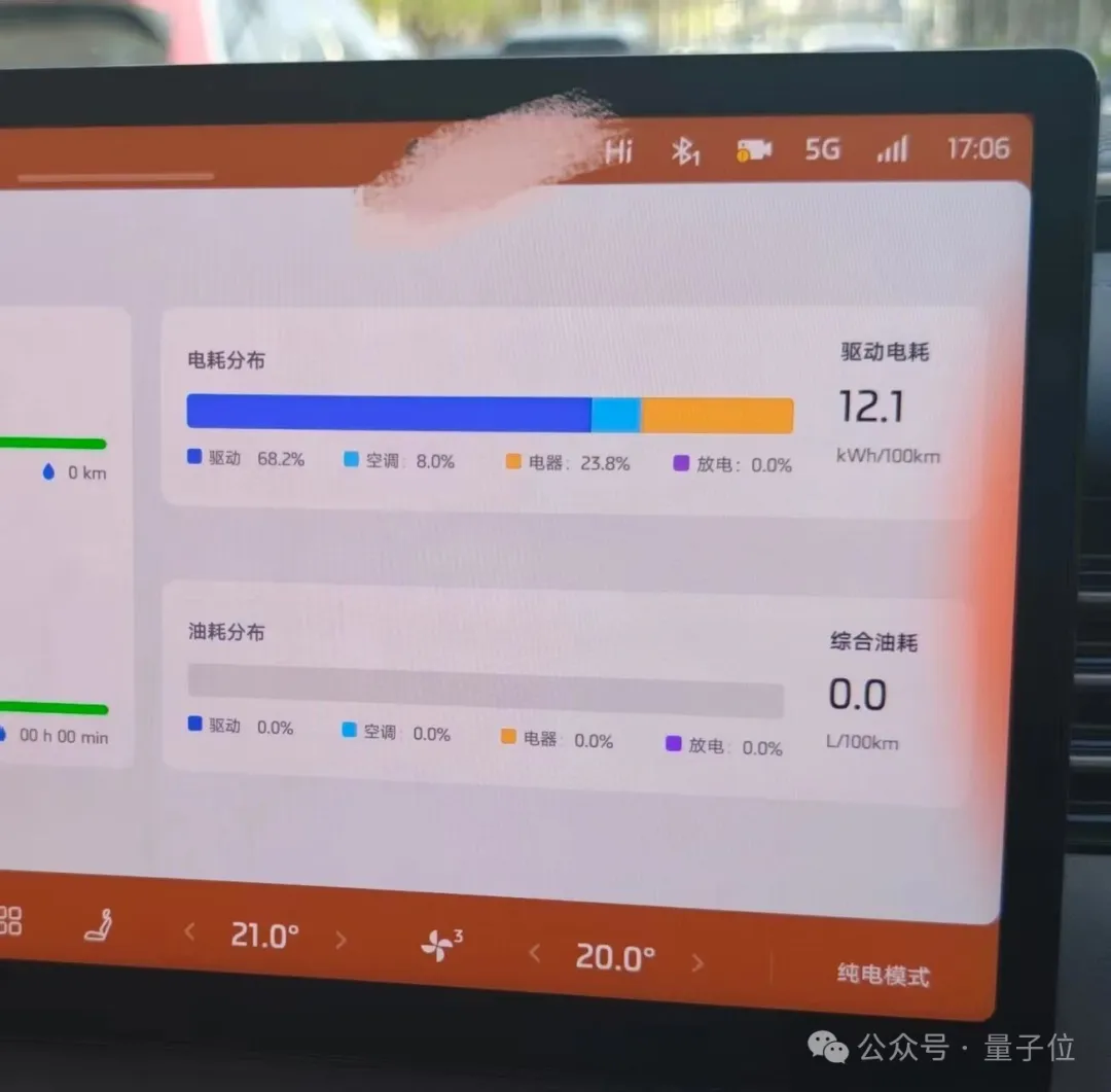 LS8可油可电,平常上下班,用电就够了。因为这套系统装了一块66度的大电池,官方标的纯电续航参数是430km,我在实测后发现标得很实,我和同事两个人,从机场跑到市区,百公里驱动电耗是12.1度。