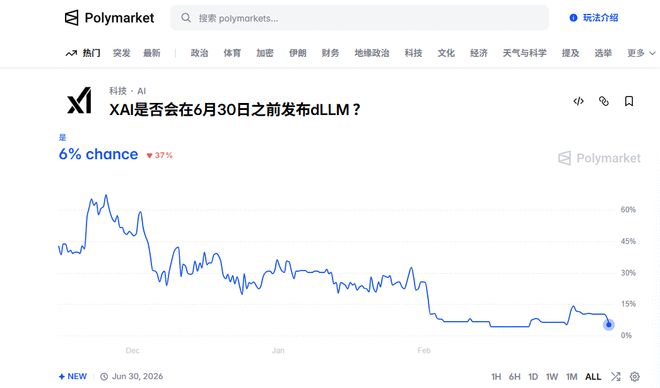 同时,xAI自身的员工流失问题也不容忽视。据报道,在最初的十二位联合创始人中已有六人离职。此外,市场上关于哪家公司将率先推出最佳AI系统的预测显示,xAI的支持率仅为6%,远远落后于其他竞争对手。
