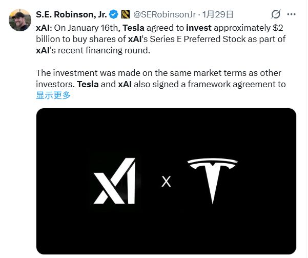 特斯拉今年1月刚宣布向xAI投资20亿美元,作为评估双方潜在AI合作的一部分。随着SpaceX收购xAI,这20亿美元直接变成了对合并后实体的间接持股。
