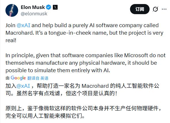 “巨硬”,一个始于2025年8月的项目,最初由马斯克宣布创建,旨在打造能够像白领一样工作的AI智能体。这一项目的名称显然是对微软的一种讽刺。