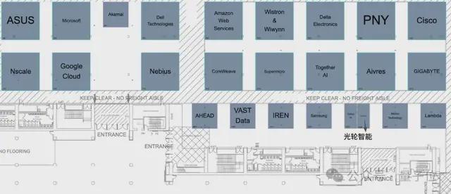 而光轮的展位Booth 1406则位于入口处,紧邻三星和美光等知名存储芯片制造商,以及Together AI、Lambda和Global AI等AI基础设施领域的重量级玩家。