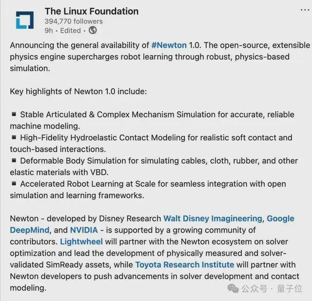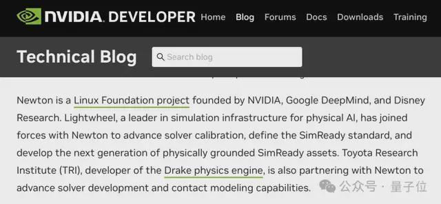 Newton是由英伟达、DeepMind和迪士尼研究公司共同开发的开源物理仿真引擎,也是Linux基金会的一个顶级项目。