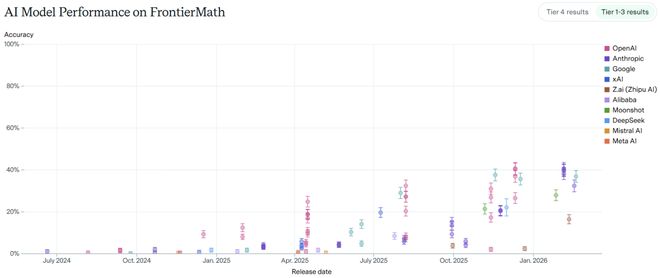 刚上线时最强AI连2%的题都做不出来,结果到了今天,GPT-5.2和Claude Opus 4.6已经能搞定基础题库40%以上的题目,连50道终极难度的第4级挑战题,正确率也突破了30%。
