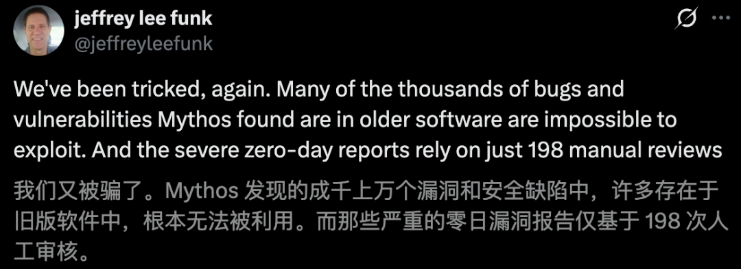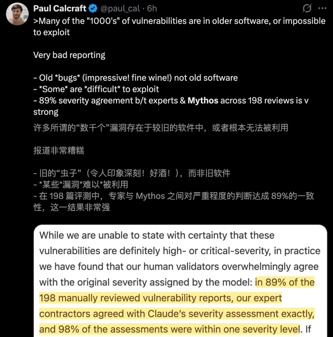 Mythos声称发现的成千上万个漏洞中,大多数存在于无法实际利用的老旧软件之中。