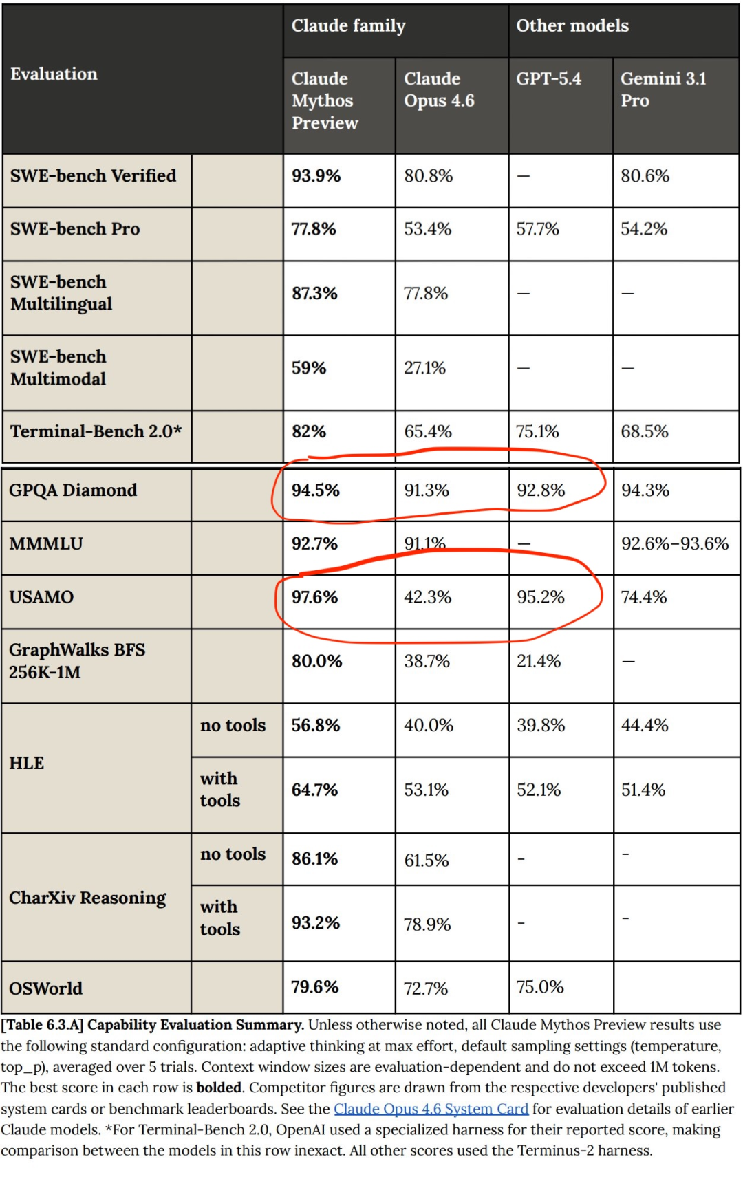 然而与GPT和Gemini相比,Claude Mythos的进步并不是突破性的进展,只是对先前模型的相对线性改进而已!