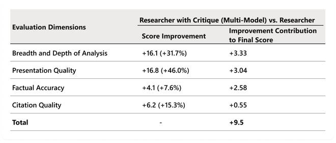 +3.33分的增幅尤其引人注目,表明Critique在推动更全面分析视角方面的价值显著。