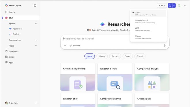 现在,Copilot中的Researcher将同时使用GPT和Claude进行工作。
