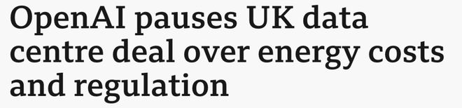 就在前段时间,OpenAI已经默默暂停了英国的一个大型基础设施项目,原因无它:当地的电费实在太贵了。