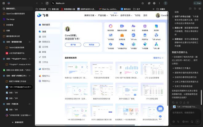 尽管存在这些挑战,Tabbit在实现自动登录、页面内容提取以及信息总结方面展示了强大的能力。例如,在没有扫码的情况下,仅凭飞书APP的登录状态就可以打开网页并进行信息抓取和处理。