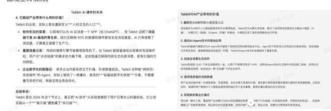 我们给出几类不同问题时,Tabbit 内置的 AI 反应速度不算太快,大约在两三分钟之后,呈现出具体的答案,甚至也会出现空转情况。