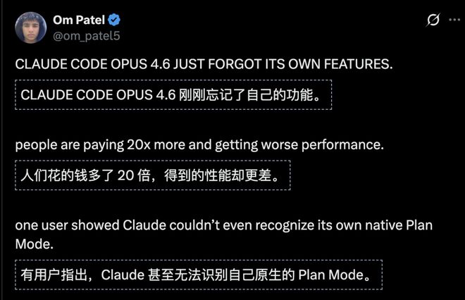 最近又爆出一个重磅消息:Claude Opus 4.6疑似翻车,价格暴涨二十倍却性能倒退,根本无法激活对应计划模式。