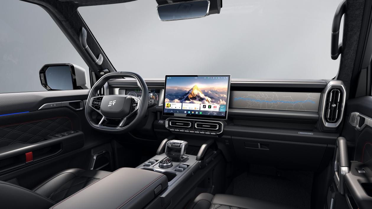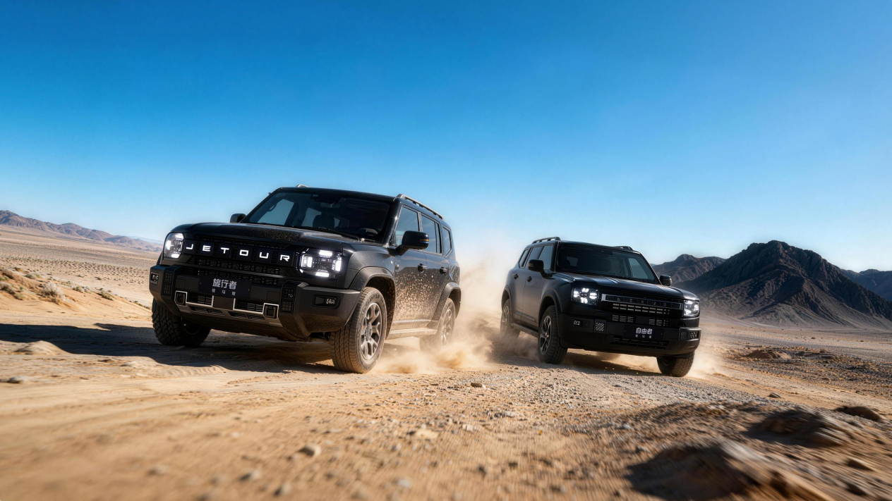 旅行者骏马版和自由者骏马版在设计上独树一帜,它们将骏马的优雅与活力融入车身线条之中。这两款车型均采用了坚固且具有辨识度的“最美方盒子”造型,车身线条硬朗,展现出强烈的视觉冲击力。深邃的骊影黑哑光漆面经过微米级金属精雕工艺处理,让车辆在静态时显得神秘而深邃,而在动态中则展现出锋芒毕露的气质。车身上的黑化字标巧妙地融入整体设计,营造出纯粹的雕塑美感,如同一匹蓄势待发的骏马,随时准备驰骋。此外,这两款车型还配备了独特的标识,进一步增强了其独特的身份和辨识度。
