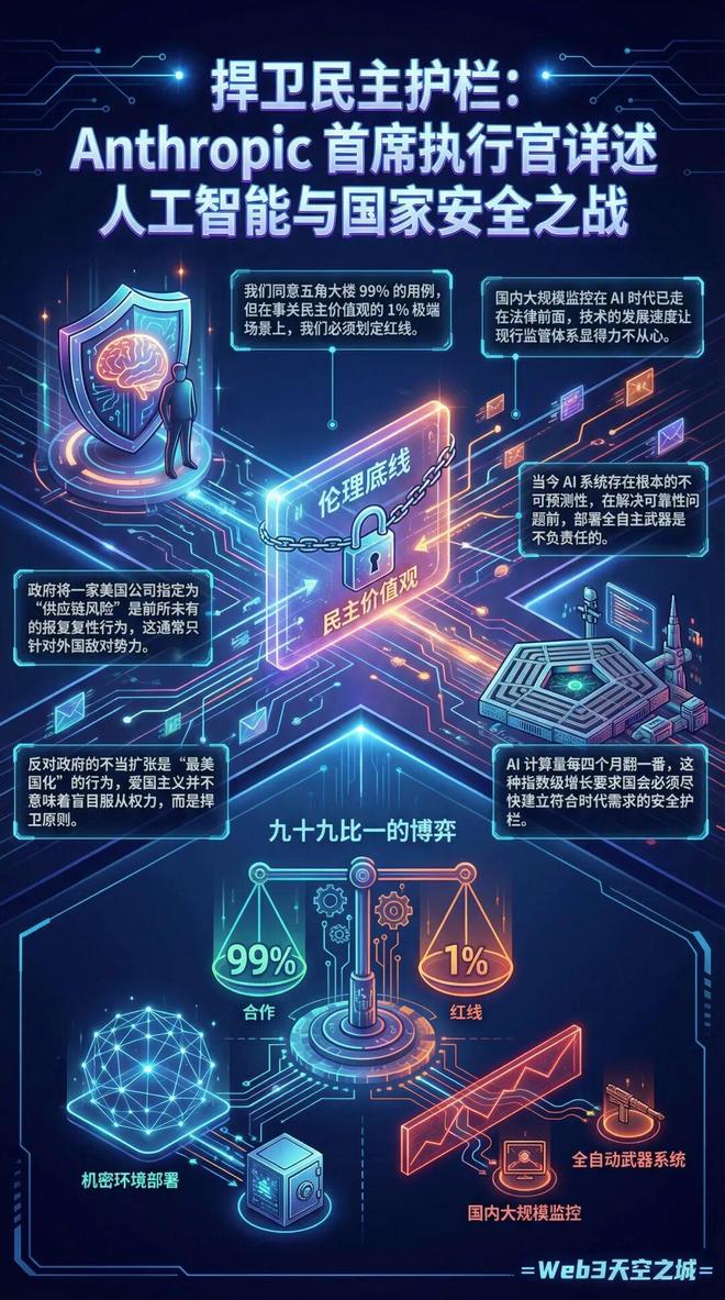 “我们必须以捍卫民主价值观的方式来保卫国家,”Amodei强调。他指出,AI 的强大分析能力正使“合法但不合理”的监控成为可能,例如政府购买私人数据并通过 AI 进行大规模画像。而在武器化方面,他坚持认为 AI 尚未达到支撑全自主作战的可靠性水平。“任何与 AI 模型打过交道的人都明白,它们存在一种基本的不可预测性。”这种技术上的不成熟,结合缺乏人类问责机制的风险,构成了 Anthropic 坚守的红线。