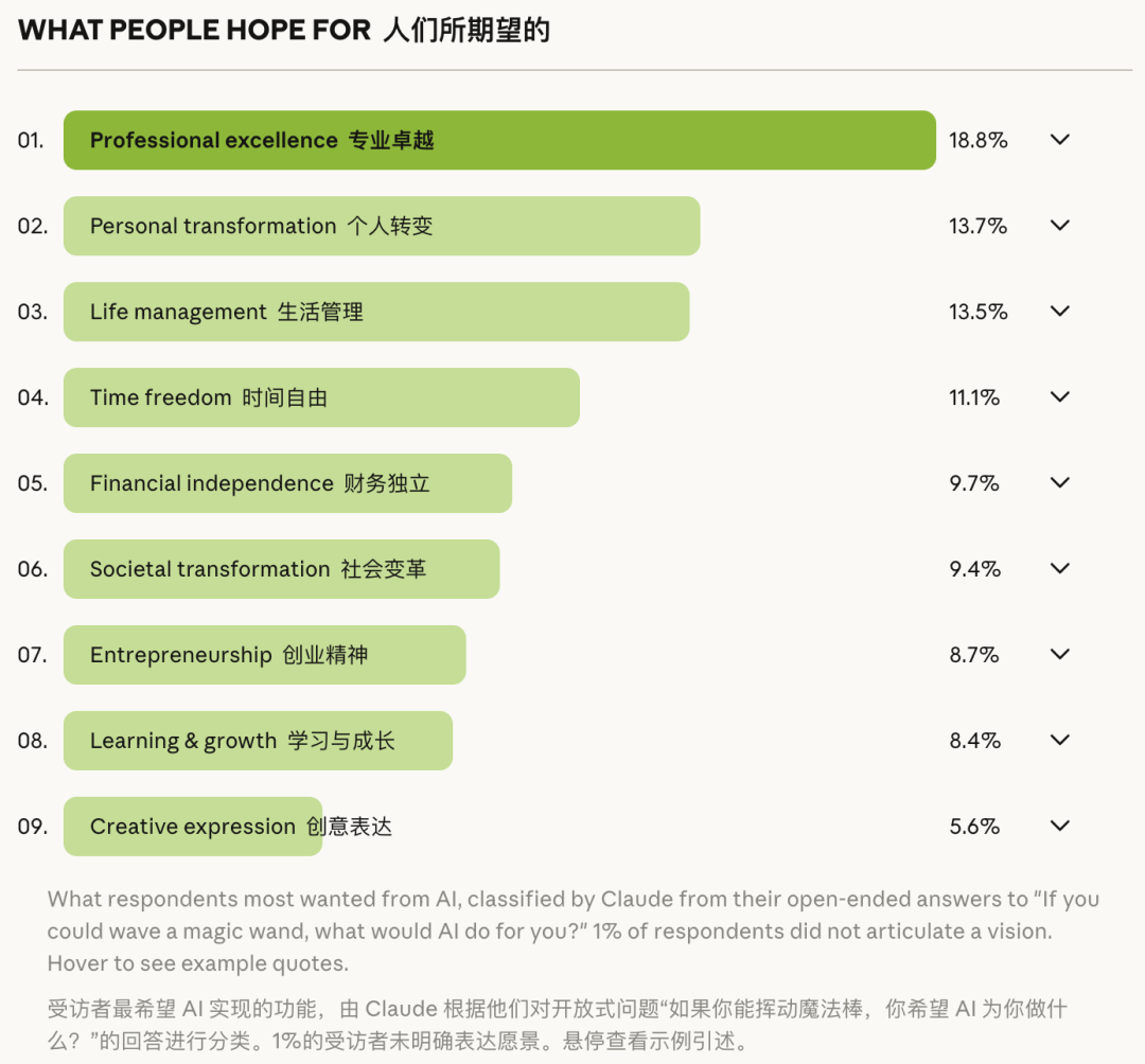来自全球159个国家、使用70种语言的80508名用户参与了这次访谈,他们分享了自己与AI互动的真实经历。