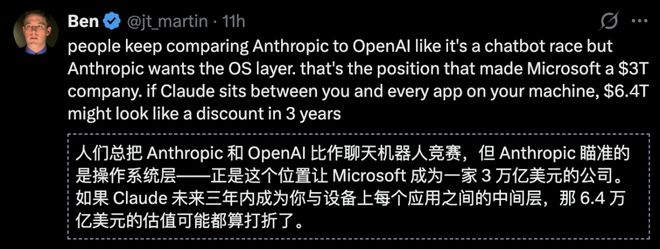 如今,Anthropic已经直接挑战苹果和微软的6.4万亿美元市值,Claude有望成为ASI时代的革命性产品。