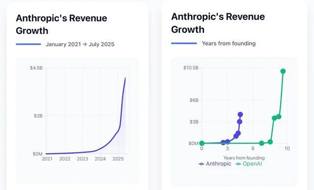 营收层面,Anthropic的年化收入已达140亿美元,并且连续三年保持每年10倍的增长速度。