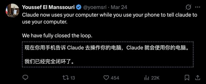 更进一步的是:用户可以直接通过手机向Claude发送指令,让它执行电脑上的任务。