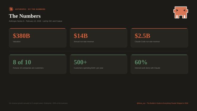 客户结构也在快速「企业化」:财富10强里有8家是Claude客户;每年付费超过100万美元的客户已超过500家——而两年前大约只有十几家;年付费超过10万美元的客户,在过去一年里增长了7倍。