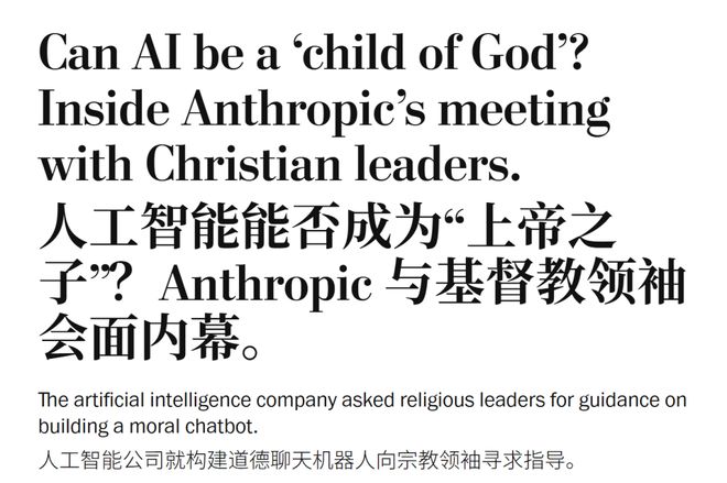 Anthropic 的发言人对《华邮》表示,公司接下来还会邀请其他宗教、其他道德传统的思想者进入对话——犹太教、伊斯兰教、印度教……可能都在路上。