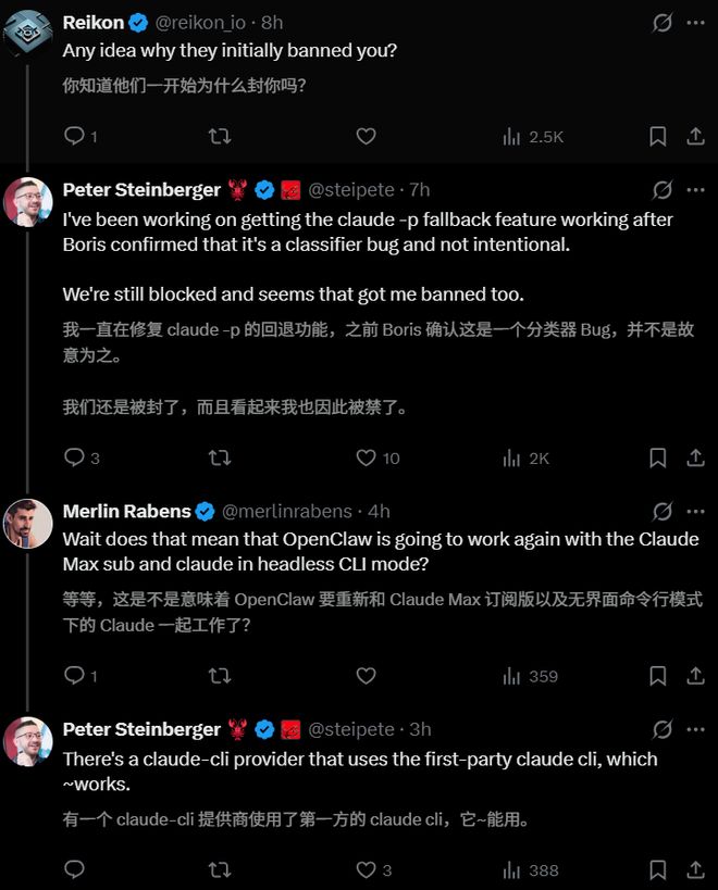 从项目被封号到解封的时间内,Steinberger与Anthropic之间的关系逐渐恶化。
