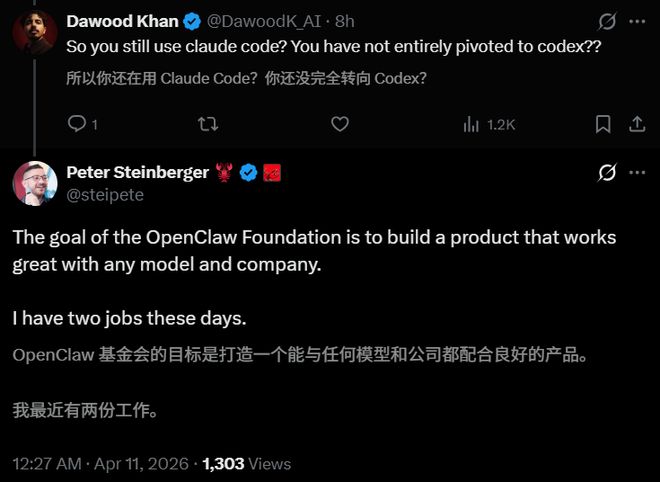 尽管他已经在OpenAI工作,但仍然每天使用Claude进行兼容性测试,以保证软件的稳定运行。