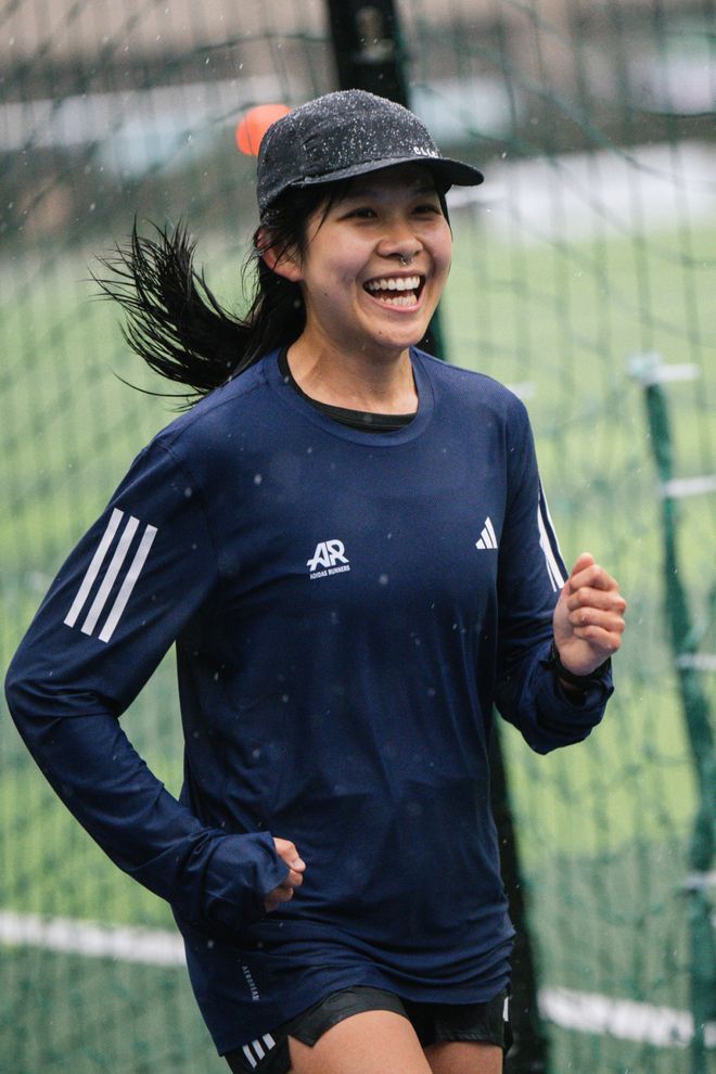 Joelle,来自新加坡的跑者,在雨中跑出了纯粹的快乐:"那种感觉就像小时候,父母总说下雨天别出门,这次终于有机会‘疯一次’。跑道上有水坑,跑起来像跳舞一样。看到大家都在拼命冲PB,我也跟着努力,最后真的跑出了个人最佳成绩,特别有成就感。"