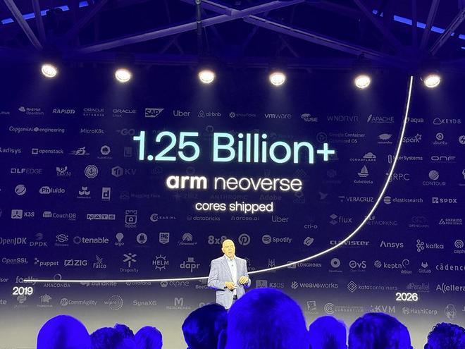 如今数以万计的公司在云端运行其软件于Arm之上,依托已向全球数据中心交付的超过12.5亿个Arm Neoverse核心。这一增长仍在加速。