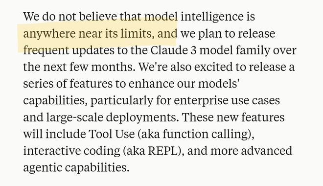 发布Claude 3时,Anthropic断言,模型智能远未达到极限。