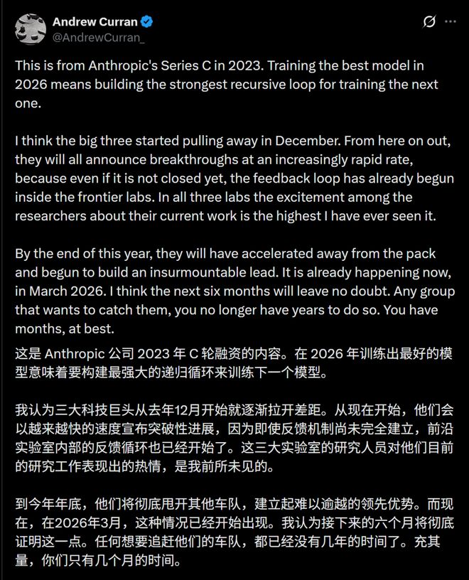2023年C轮融资时,Anthropic就曾表示,要训练出2026年的最佳模型,需要构建最强的递归循环。