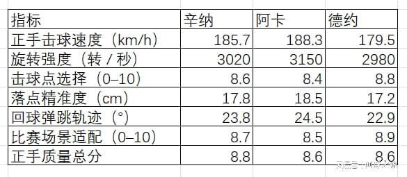 三、辛纳、阿卡、德约三位球员正手质量指标的比较分析