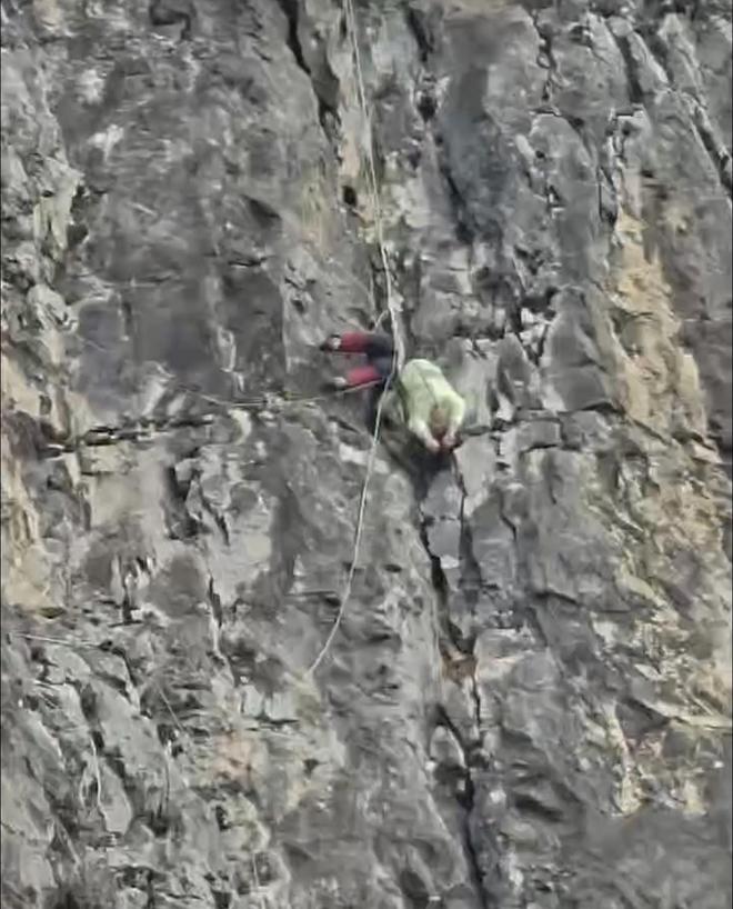 据了解,两名攀岩者是一对年龄为23岁的男女青年,在放绳下降时遭遇事故。事发地点位于一处接近垂直的石灰岩峭壁中部,救援环境极其复杂且风险极高。