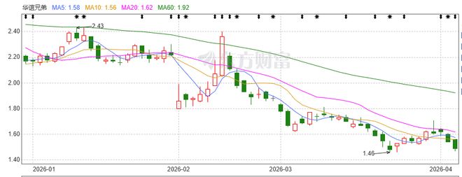 华谊兄弟今年以来股价持续下滑。截至4月3日收盘时,其股价为每股1.49元,总市值约41亿元。