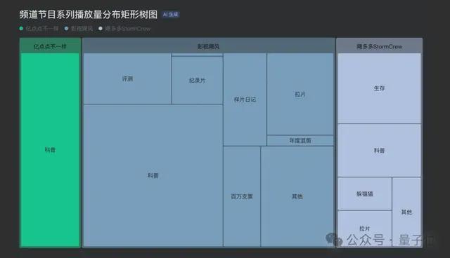 随后文君继续提出需求:“画一个矩形树图,查看不同系列的播放情况;再生成一张热力图来了解发布时间对作品观看量的影响。”