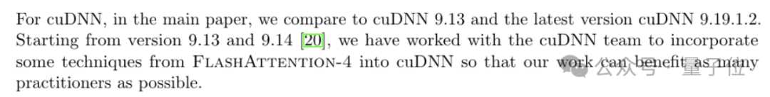 论文还指出,cuDNN从9.13版本开始就已经开始吸收了FA4的核心技术。