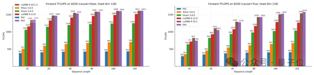 在B200 GPU上的实测数据显示,其前向传播算力最高达到1613 TFLOPS/s,一举实现71%的理论峰值利用率。