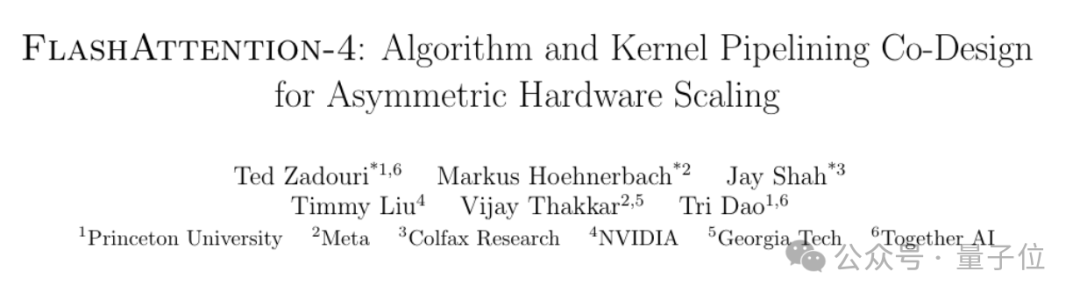 FlashAttention-4算法由Tri Dao领导,联合Meta、Together AI等团队共同开发。