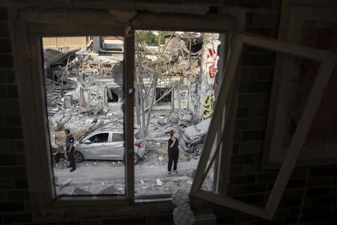 2023年10月7日,哈马斯统治者对以色列发动袭击后的建筑物废墟/ 图源:视觉中国