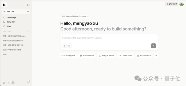 除了Super Agent主对话框外,MuleRun另外的Computer功能也值得一提。