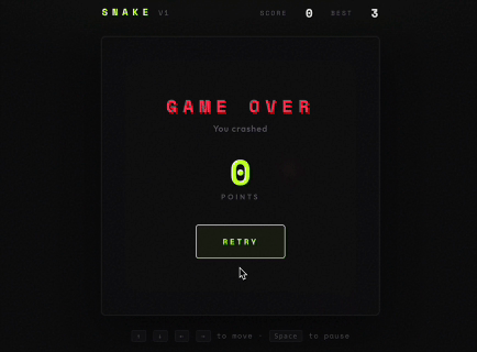 生成一个贪吃蛇小游戏。