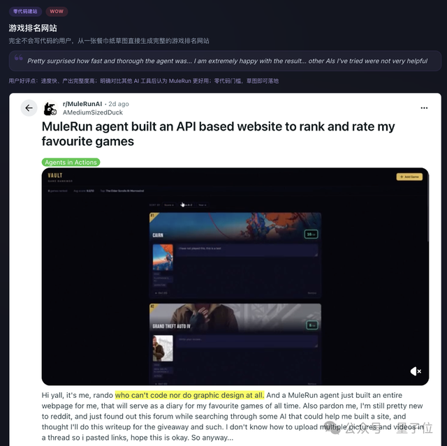 例如在Reddit上,一位完全不会写代码的用户,仅用一张潦草的草图,就让Agent生成了一个完整的游戏排名网站: