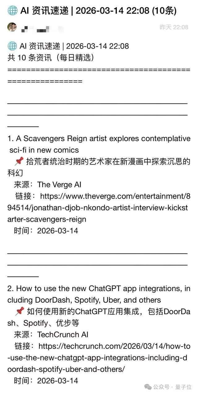 每天晚上骡子会精准地把当天全球最新的AI资讯推送我的邮箱里,标题、来源、报道链接一应俱全: