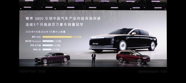 数据显示,自2024年至今,问界M9的累计上牌数量已超过27万辆,远超宝马X5与X7的总和(17万辆)及奔驰GLE与GLS的合计数(11万辆)。定位更高的尊界S800也表现出色,在同一时期内的上险量达到13092辆。