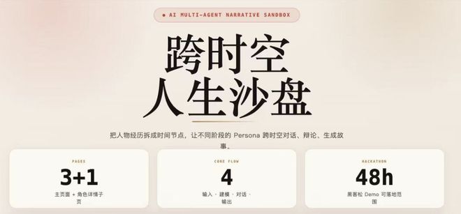 比如主打 AI 智能对话的「时序人格」团队,他们做了一个能让不同人生阶段(比如 20 岁的冲动期与 50 岁的成熟期)的名人,跨越时空坐在一起开会辩论的 App。