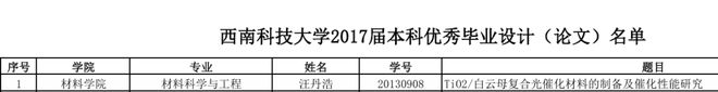 本科毕业后,他的毕业论文《Ti02/白云母复合光催化材料的制备及催化性能研究》被评为优秀论文。