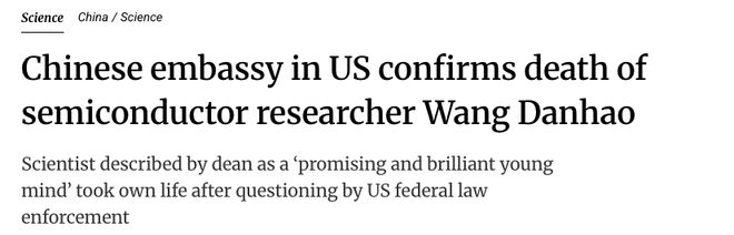 中国驻美大使馆发言人对媒体确认,自杀的中国博士后为汪丹浩