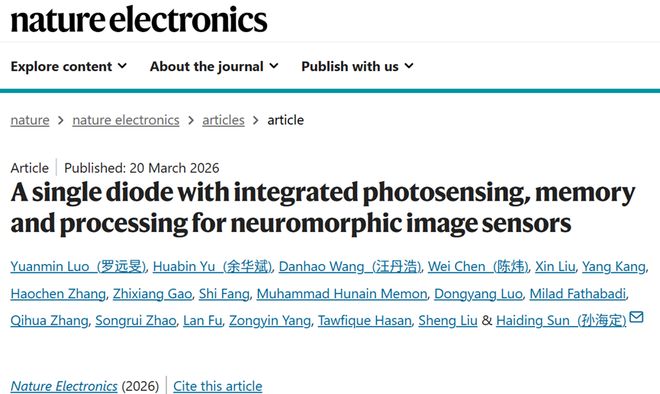 值得注意的是,汪丹浩在三月二十日去世当天作为共同第一作者的一篇论文发表于《自然·电子学》杂志。该研究团队首次设计出一种集成光传感、存储与处理功能的智能光电二极管新架构,并为低功耗类脑视觉相机提供了硬件基础。