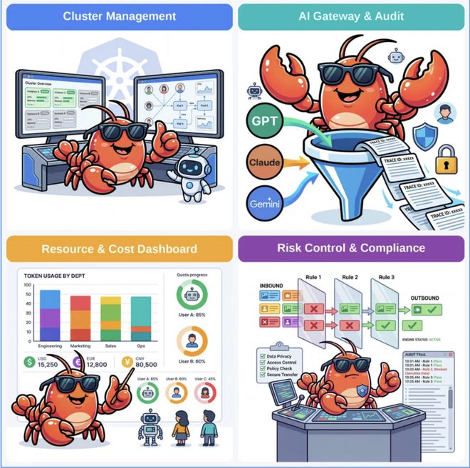 此外,“企千虾”的容器化机制为每个OpenClaw实例提供独立的运行环境,确保多实例并发时系统的稳定性。同时,它还集成了GitHub上的开源项目ClawManager作为系统的核心管理工具。