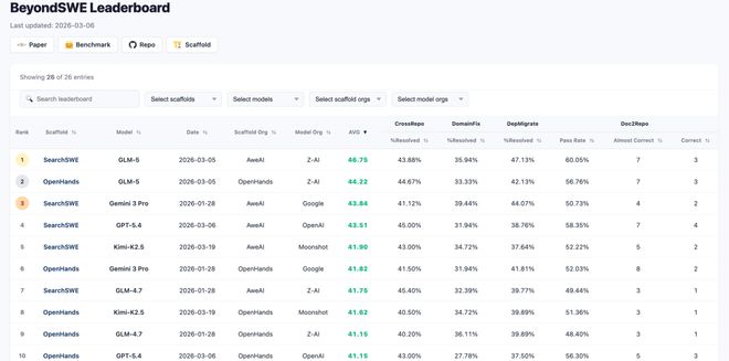 Leadboarder链接:https://aweai-team.github.io/BeyondSWE_leaderboard/