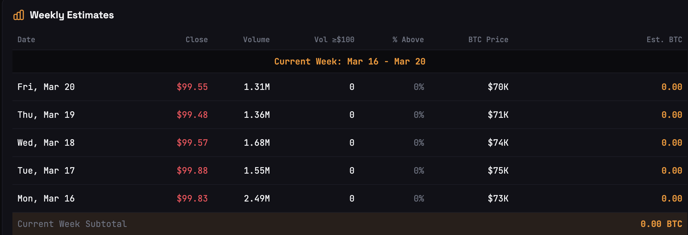 比特币头部持有方Strategy(MSTR)本周未通过其STRC优先股销售渠道增持BTC,数据来自STRC.LIVE。